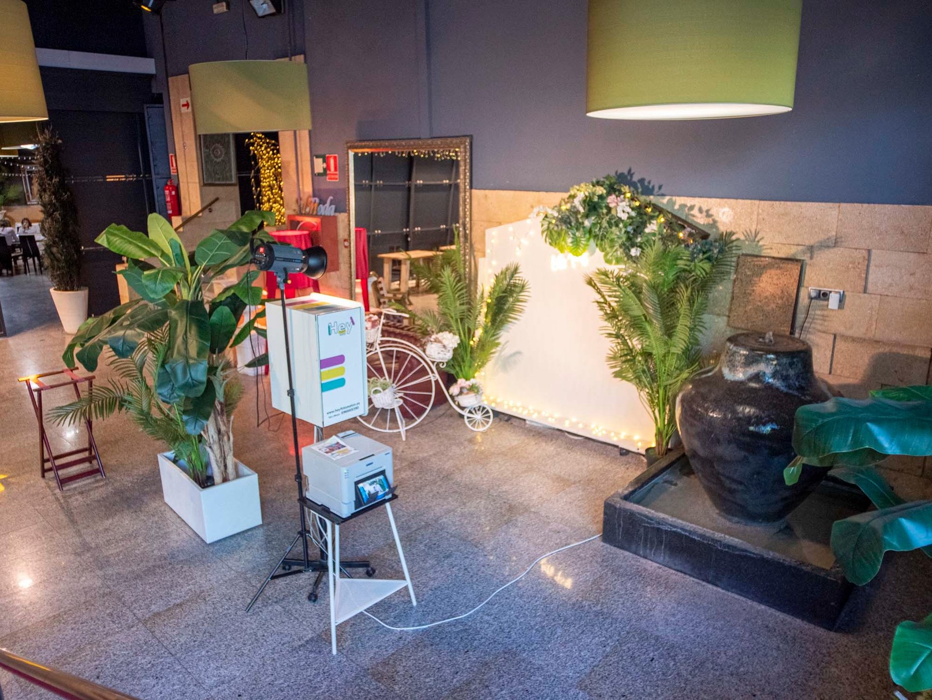 Ofrecemos min 2 horas de servicio con fotos ilimitadas, para que tus invitados puedan capturar todos los momentos especiales. Además, cada foto se imprimirá en 2 copias, y si algún invitado desea más copias, las podemos reimprimir. También puedes elegir el fondo y el diseño del marco, personalizándolo con vuestros nombres y fecha. Y para añadir diversión, contamos con un atrezzo especial. Para que puedas disfrutar de tus fotos de forma digital, te entregaremos un Pen-Drive con todas las imágenes y GIFs, que también estarán disponibles en una web online para que tus invitados las vean y descarguen. ¡No dudes en elegir HEYFOTO® para tener recuerdos inolvidables de tu evento!